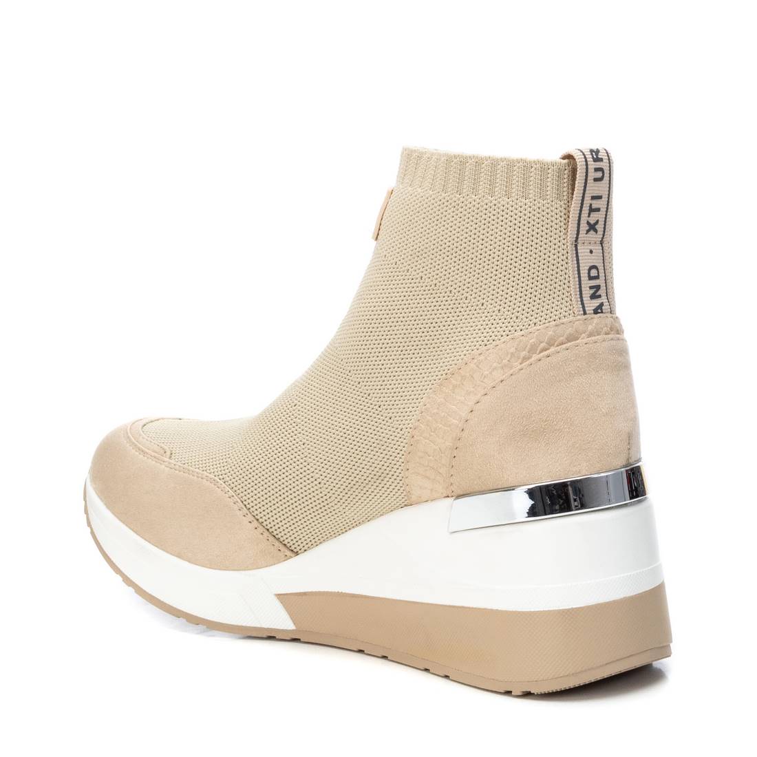 Botín de mujer, marca Xti Basic. Modelo fabricado en textil elástico en parte superior para facilitar su calce y un mejor ajuste al pie. Cuña de 6 cm de goma, con suela de goma antideslizante. Este modelo ha obtenido el certificado vegano por la organización mundial PETA (Organización de los derechos de los animales).