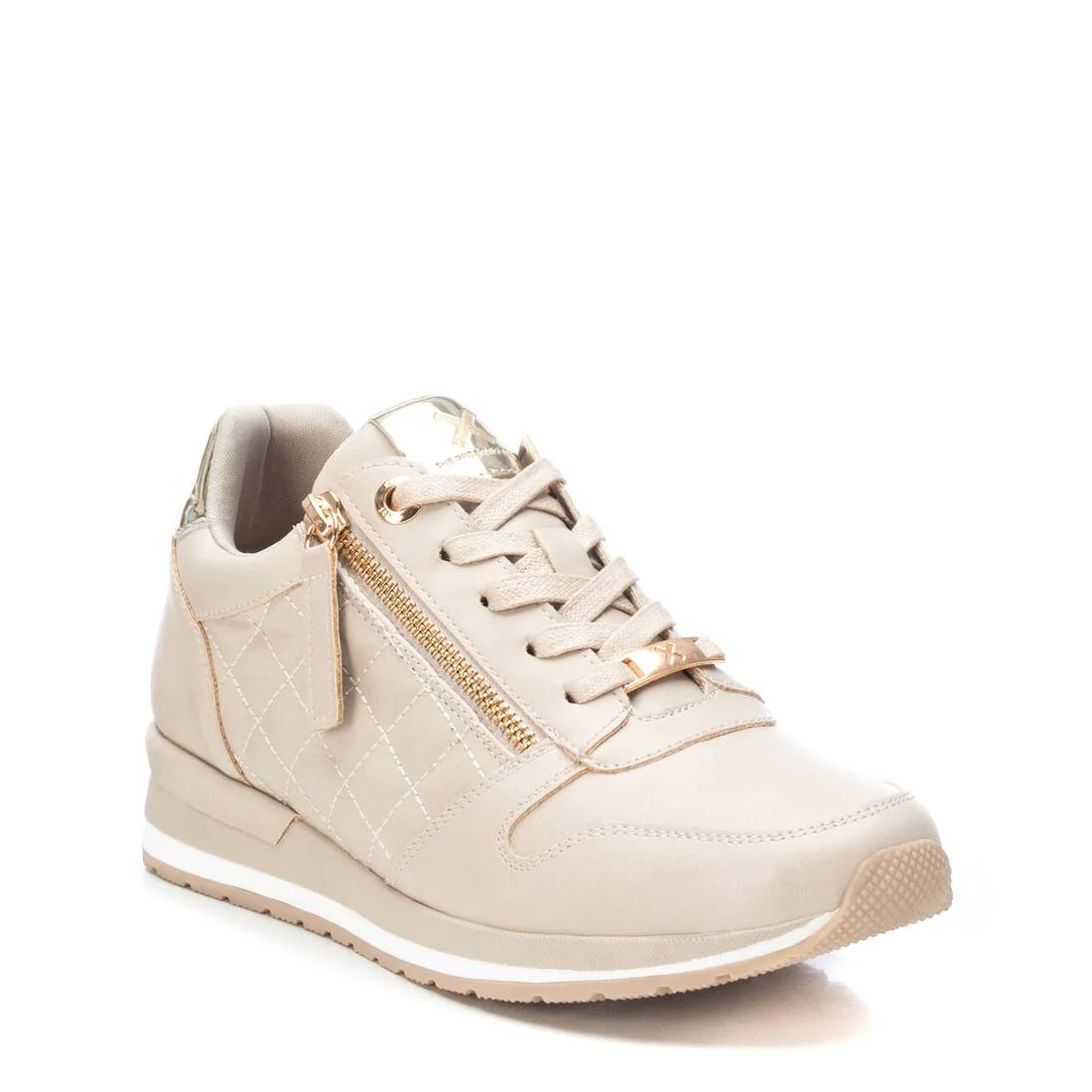 Zapatilla de mujer de la marca Xti. Fabricado en un material que imita la piel. Cierre mediante cremallera y cordones ajustables. Detalles acolchados y metalizados. Suela gruesa antideslizante. Con plantilla extraíble. Este modelo ha obtenido el certificado vegano por la organización mundial PETA (Organización de los derechos de los animales).
