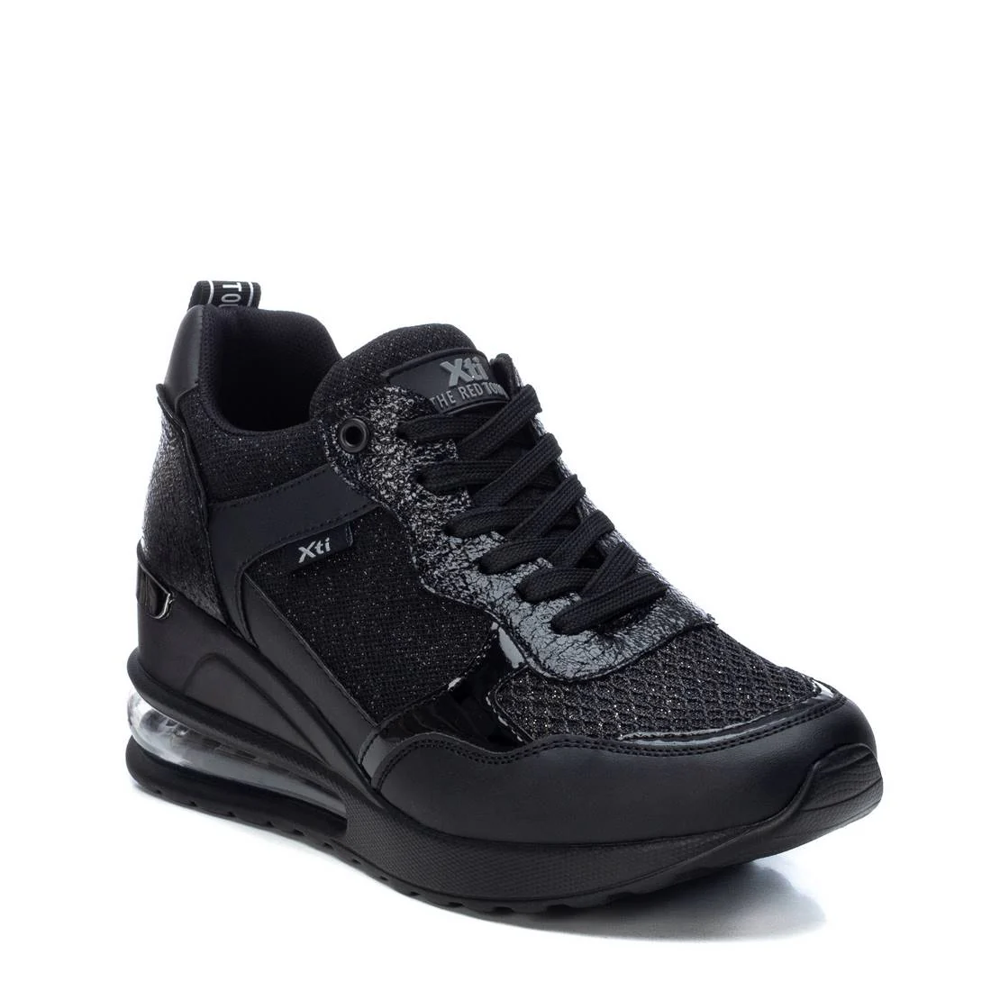 Zapatilla de mujer con cordones de la marca Xti. Cuenta con cómoda cuña de 7 cm con suela de goma antideslizante. Zapatilla de estilo casual fabricada con una combinación de materiales de diferentes texturas. Una zapatilla muy original y de tendencia para esta temporada. Este modelo ha obtenido el certificado vegano por la organización mundial PETA (Organización de los derechos de los animales).