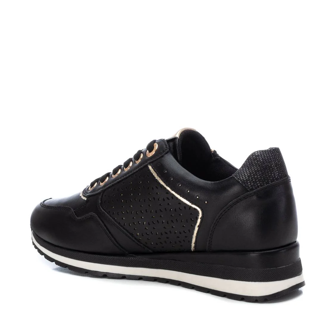 Zapatilla casual de mujer, de la marca Xti. Está fabricada en material que imita a la piel. Bonito troquelado en el lateral. Cordones al tono y cremallera con función en el lateral. Cuña bicolor con suela de goma antideslizante. Este modelo ha obtenido el certificado vegano por la organización mundial PETA (Organización de los derechos de los animales).